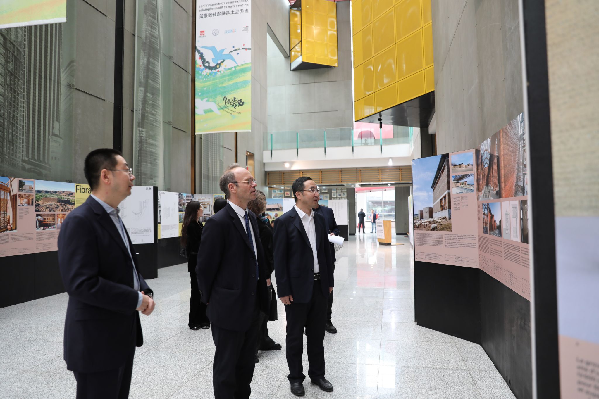 张佩栋在致辞中指出,“自然建筑展”落地我校,既是中法建筑文化的深度对话,也是双方践行绿色理念、共护“蔚蓝星球”的生动实践。学校将以展览为纽带,一方面助力师生把握国际可持续建筑发展脉搏,推动绿色理念融入专业学习与科研;另一方面深化与法国在建筑教育、科研创新、文化交流等领域的合作,为中法绿色合作注入“建大力量”。