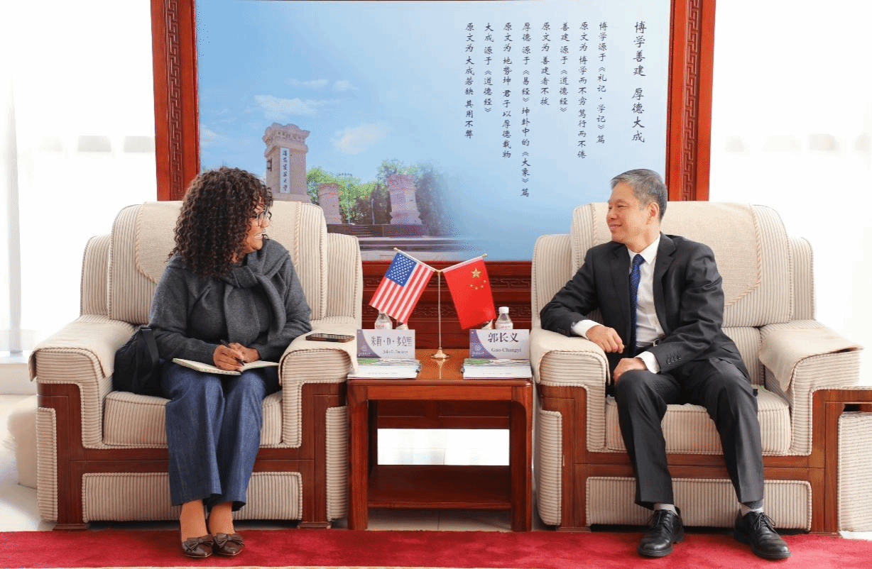 郭长义代表学校对朱莉一行的到来表示欢迎。他指出,我校与班尼迪克大学合办的信息管理硕士项目自2004年获得国务院学位委员会批准以来,已走过20年的办学之路,双方在项目管理、教学实施等方面积累了丰富经验,培养了大量的政府、企业、高校等优秀人才,为我国计算机及管理领域的发展作出了重要贡献,感谢朱莉多年来对该项目的持续支持,使两校之间的合作融洽且紧密。他希望,两校之间未来能够在合作办学、师生互访、科学研究等方面进一步深度合作。