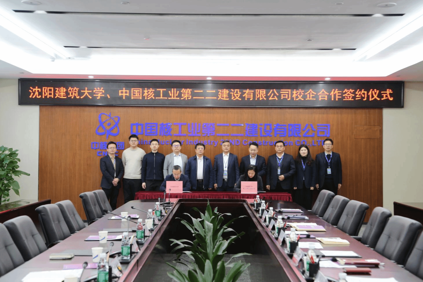 在中国核工业第二二建设有限公司,双方开展校企合作交流。中核二二董事长、党委书记郭云,党委副书记冯雪茹等领导参加了活动。栾方军重点阐述了学校“三全育人”理念下的人才培养成果,介绍了学校在建筑、核建等相关领域的专业学科建设优势与育人特色。郭云详细介绍了“核筑学堂”等人才培育体系及我校毕业生在企业的成长业绩,展现了校企协同培养高素质应用型人才的良好成效。双方围绕订单班共建等议题深入磋商,达成深度合作共识并正式签署协议。