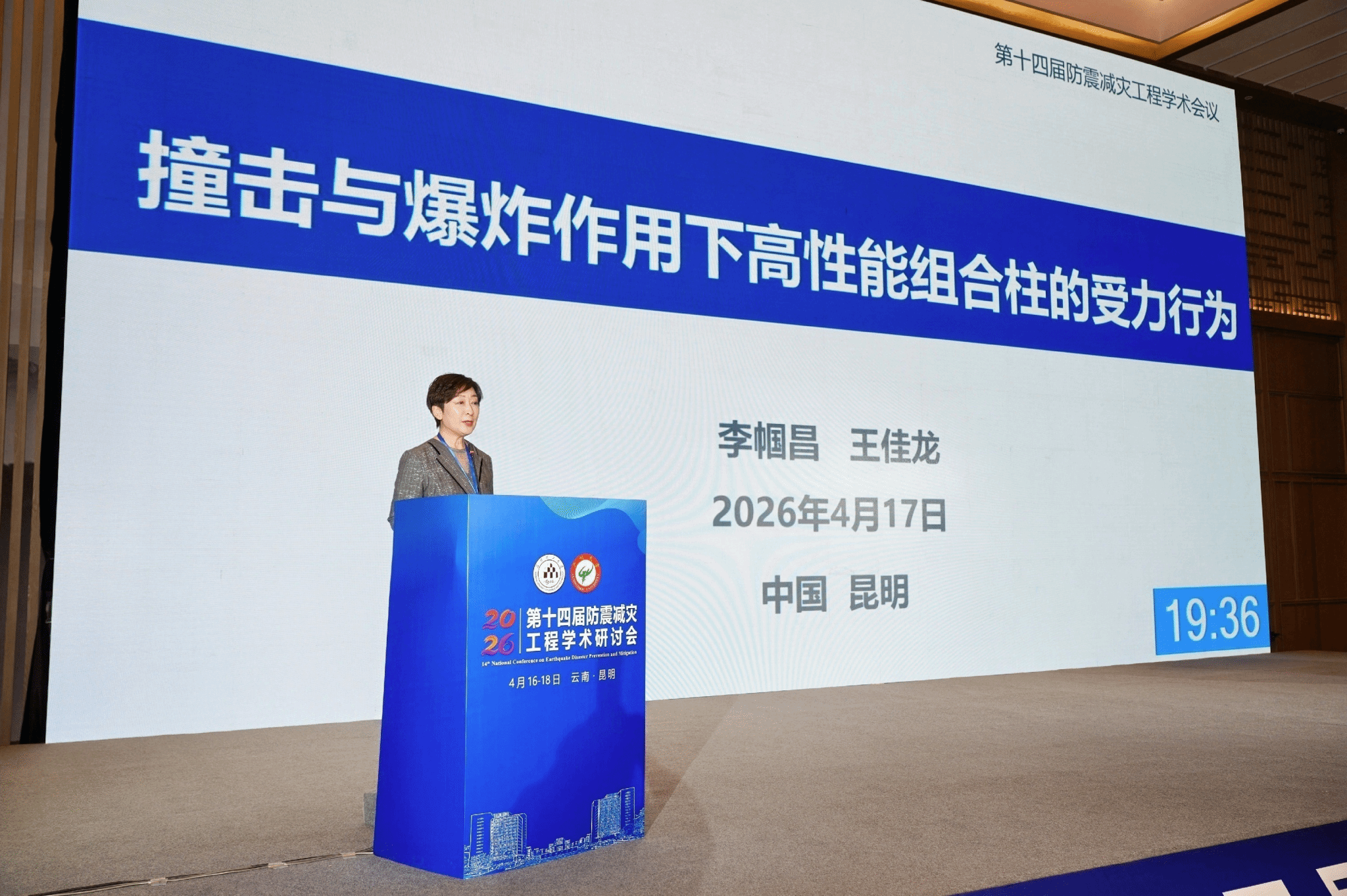 在唐山地震50周年、丽江地震30周年之际,4月16日至18日,第十四届防震减灾工程学术研讨会在云南昆明召开。本次会议由中国土木工程学会防震减灾工程分会、昆明理工大学、广州大学、云南省土木建筑学会共同主办,昆明理工大学建筑工程学院、云南省工程抗震研究所等承办,全国从事防震减灾技术研究的院士、专家、学者和工程技术人员等共计500余人参加会议。我校教授李帼昌参加会议并作大会特邀报告。